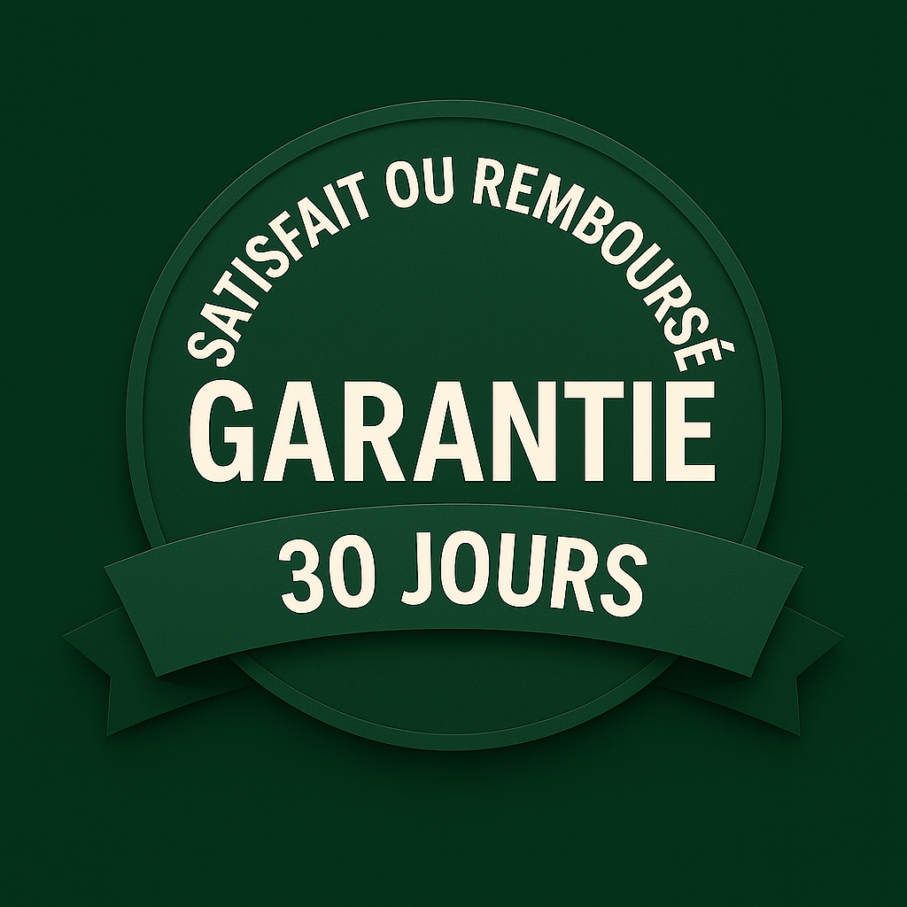 Si vous n’êtes pas pleinement satisfait, nous vous remboursons. Écrivez-nous et nous vous accompagnerons pas à pas jusqu’au retour et au remboursement.